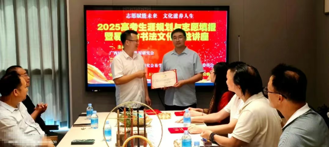 6月1日下午,为助力2025年新高考改革背景下的考生科学规划升学路径,由广西民族文化发展研究会主办的“志愿赋能未来,文化滋养人生——2025高考生涯规划与志愿填报暨易学与书法文化公益讲座”在南宁市青秀区高坡岭人才公寓成功举办。