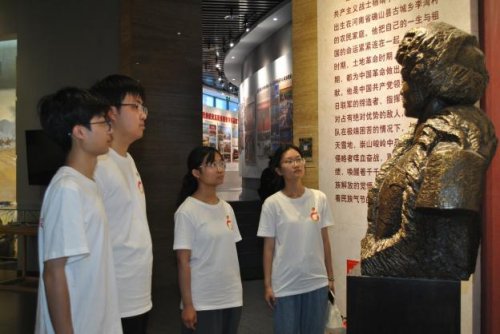图为实践团成员在豫北抗战纪念馆参观 创始人王绍勋正在讲解。陈雨欣供图