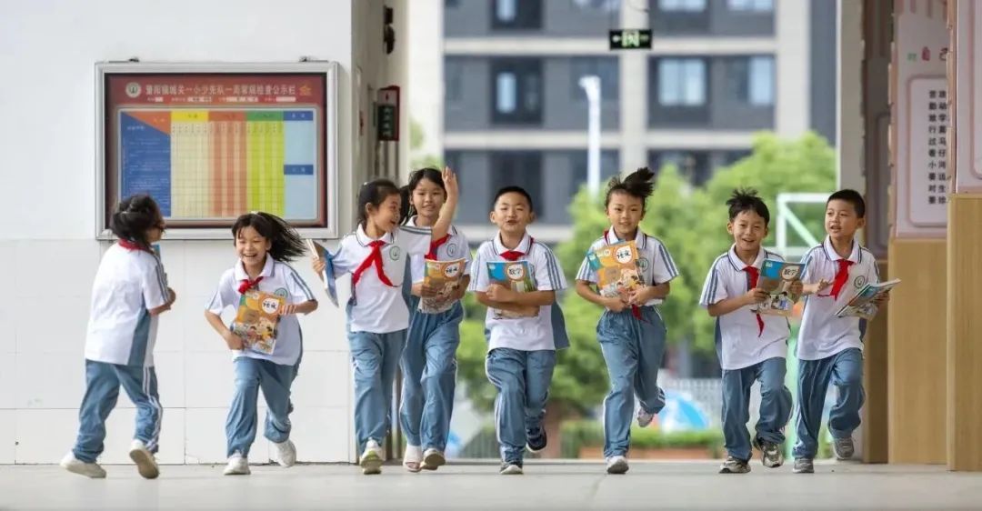 8月30日,芜湖市繁阳镇城关一小,学生们手持刚领取的新课本开心地行走在校园里。肖本祥 摄