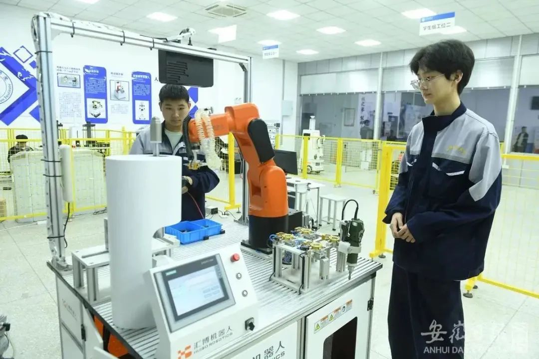 10月27日,在安徽阜阳技师学院机电工程系人工智能实训室,学生在进行机器人视教编程的实训练习。王彪 摄