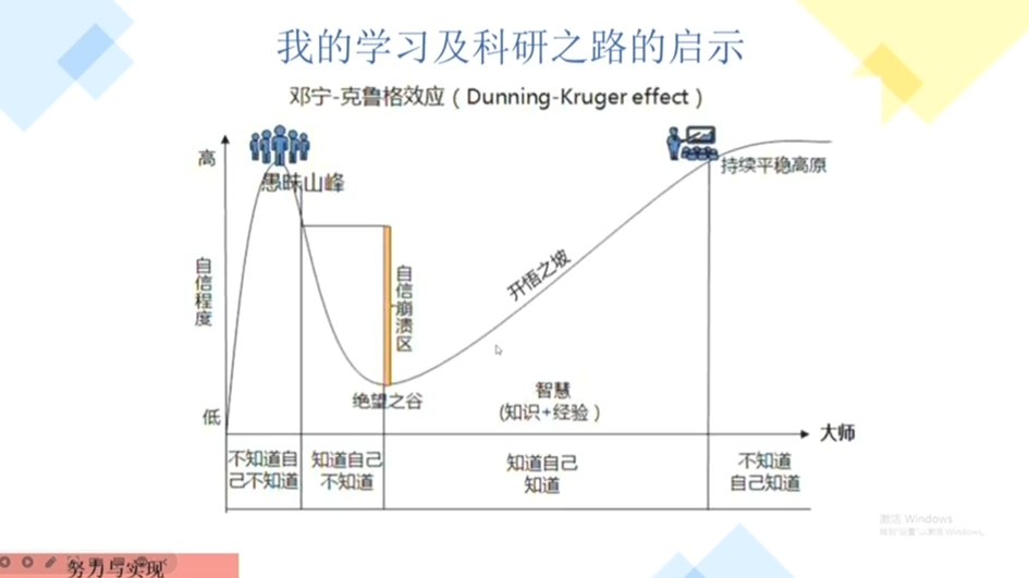 在谈到自己的学习及科研之路的启示时,郝博士结合邓宁-克鲁格效应( Dunning-Kruger effect),告诉同学们每个人在知识的攀爬过程中,都会经历“愚昧高峰”和“绝望之谷”,只有不断积累知识和经验,通过反思每一次失败与不足,才能更好地修正自我、生成智慧,走向“开悟之坡”。在考虑自己未来的专业与选择时,首先要有兴趣、要热爱,虽然辛苦但快乐着;其次,要志存高远,开阔视野,思考可以为国家、社会和人类更美好的未来做什么,给自己一个强大的内驱力并为之付出努力,潜心学习,夯实基础,将来为国家科技振兴作出贡献。