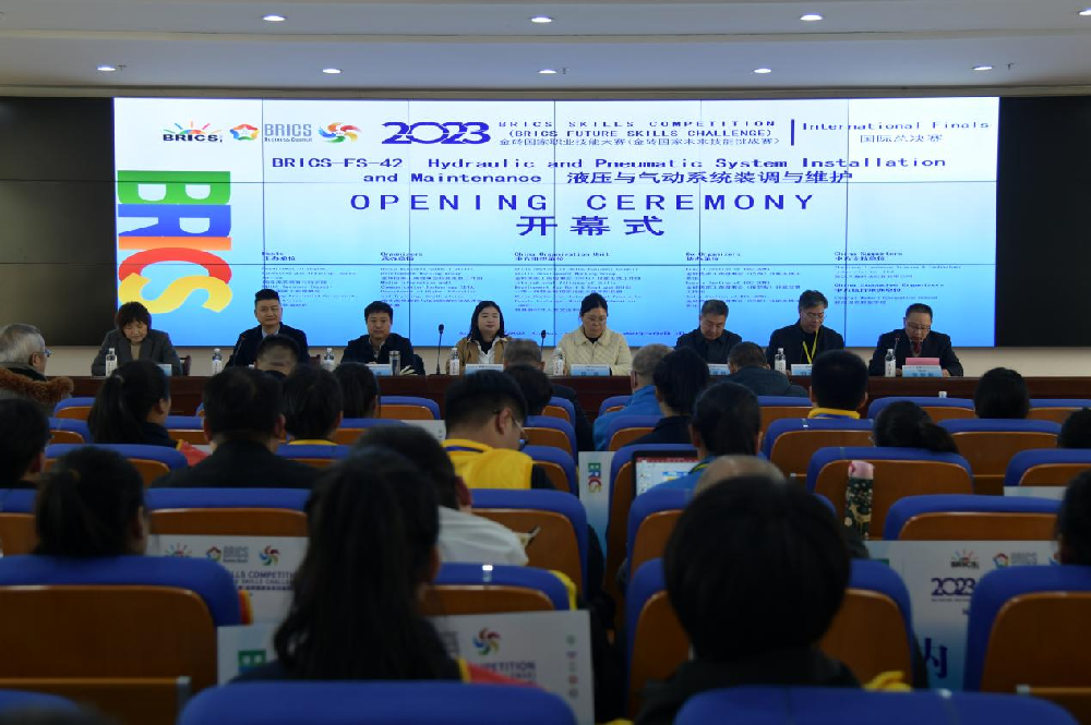 2023金砖国家职业技能大赛“液压与气动系统装调与维护”赛项国际总决赛在邢台现代职业学校学校开幕...