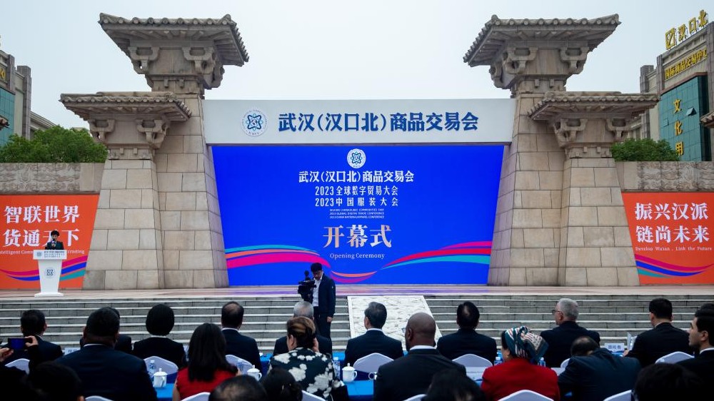 以“智联世界 货通天下”为主题的2023全球数字贸易大会、武汉(汉口北)商品交易会在武汉市黄陂区汉口北国际贸易城中心广场正式开幕。...
