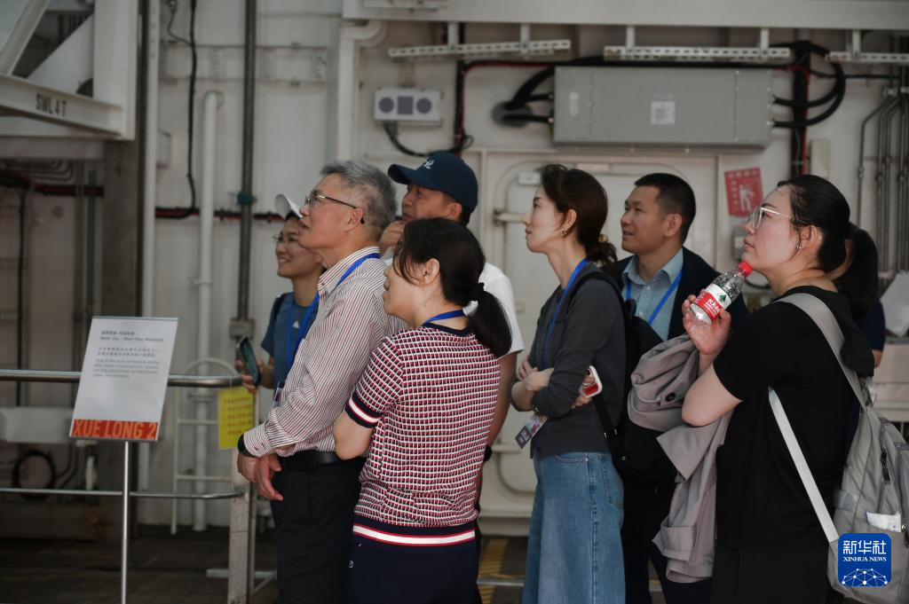 “我们一行30人集体前来,无不惊叹于船上浓浓的‘科技感’。”来自香港一家商会的林先生说,“我上周刚参观了在香港科学馆举办的‘极地科研与气候变化’展览,了解到要在南极收集大量实验所需的样品实属不易,但我们国家做到了。”