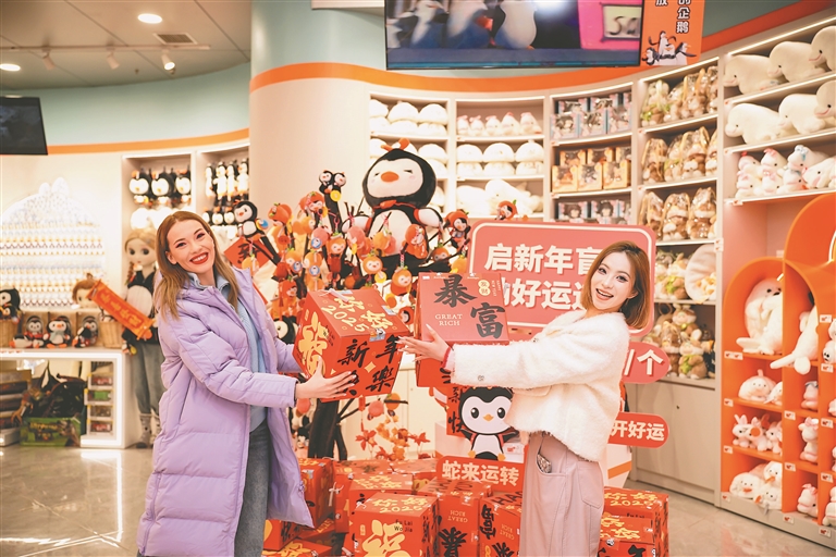 游客新年期间打卡“淘学企鹅”文创产品。黑龙江日报记者 董广硕摄
