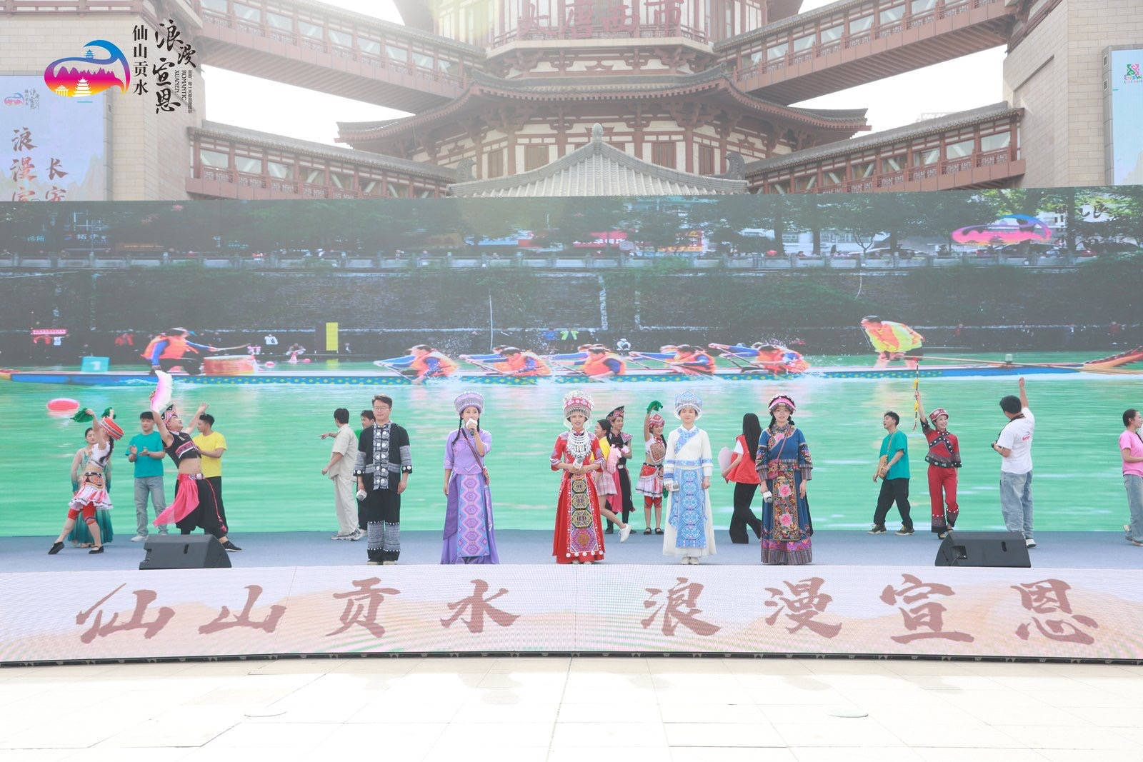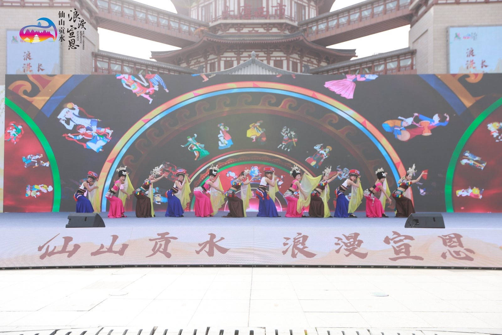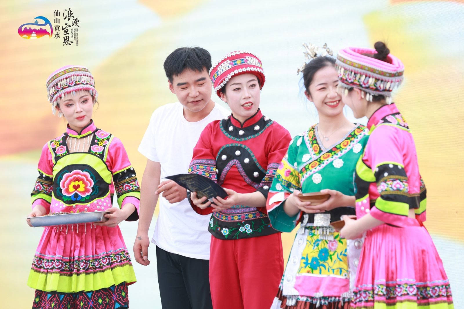 土家阿哥阿妹们以情景推介的形式带领着现场观众沉浸式体验,宣恩独特的自然生态资源和风情民俗构成了景城一体 主客共享的旅游新画卷。狮子关旅游区、伍家台贡茶文化旅游区、仙山贡水旅游区、彭家寨旅游景区、矅天眼景区、 野椒园景区等旅游资源一一在现场呈现。