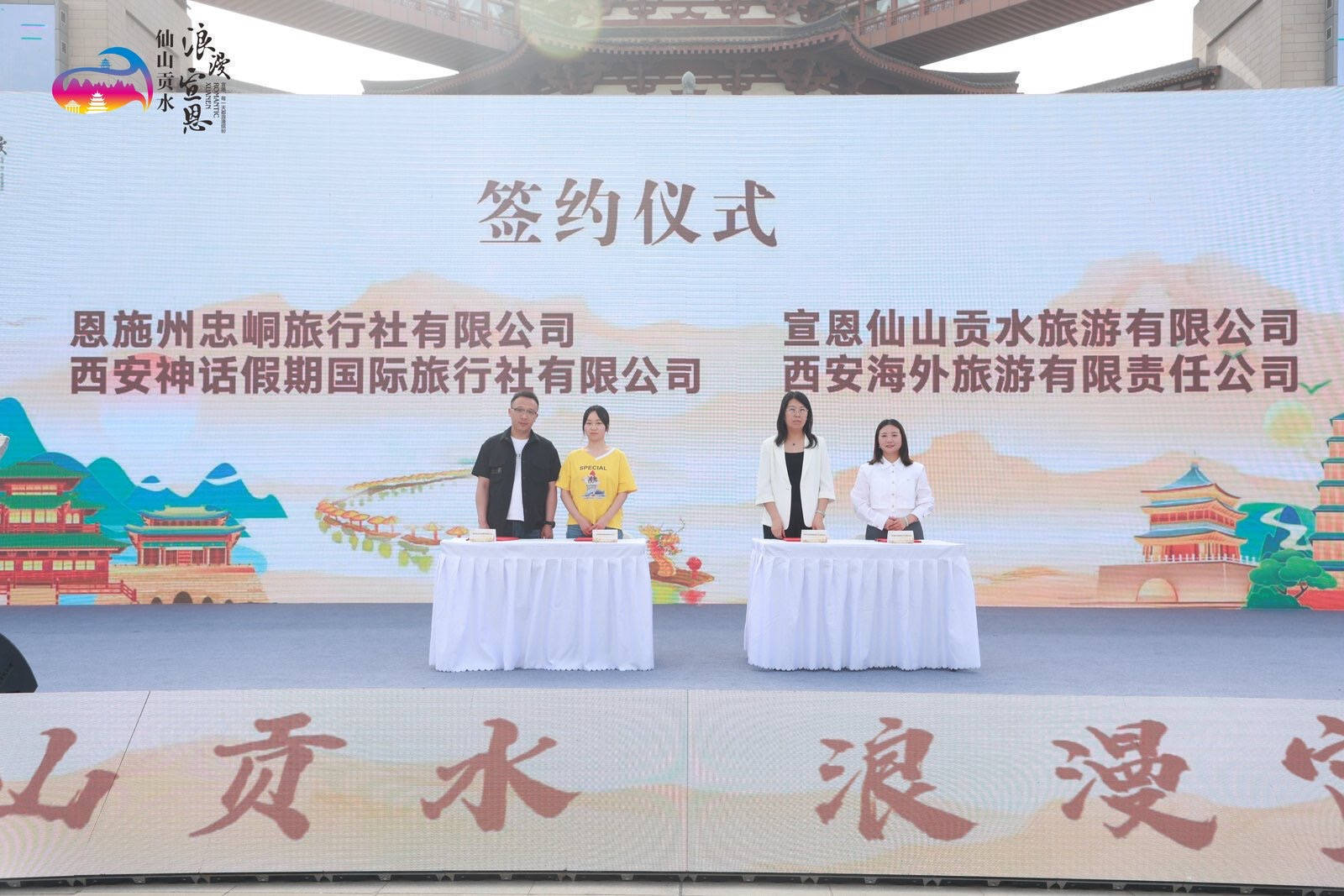 活动现场,宣恩文旅企业与西安市旅行社签署《客源互送协议》,宣恩旅发集团与陕西10家头部旅行社达成年度万人送客计划。双方将联合开发“西安-宣恩”高铁/航空旅游专线、研学旅行及康养度假产品,实现资源互通、市场共享。