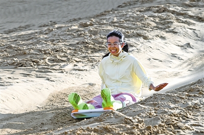 “从来没见过这么美又这么好玩的沙漠,我体验了好几个娱乐项目,太过瘾了。”在位于杭锦旗独贵塔拉镇的夜鸣沙旅游区,游客范女士兴奋不已,“我们姐弟三人从广东自驾来内蒙古旅游,这是第一站。今天来看沙漠,明天去看草原!”