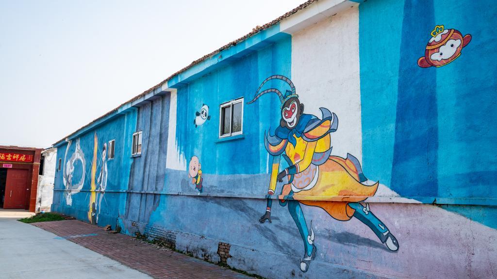 这是张王村内的特色墙面手绘。新华社记者高天 摄