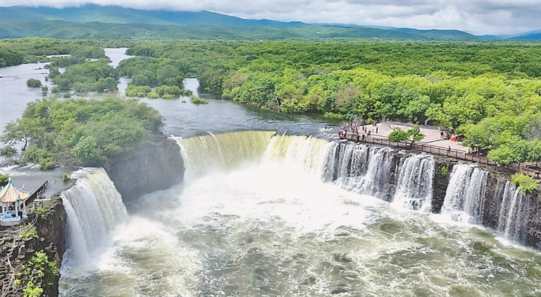 黑龙江日报讯(赵虎影 记者张雪地)“太壮观了!今天看到了水势浩大的镜泊湖三面飞瀑景色,还有精彩的跳水、演艺活动,没白来!”6月2日,游客在镜泊湖景区游览时,连连点赞。记者从景区管委会获悉,由于连日降水,镜泊湖吊水楼瀑布在今年首次出现三面飞瀑景观,站在观景长廊能看到三面环水的壮观景象。近看瀑布水流一路狂奔,气势恢宏,无比震撼。
