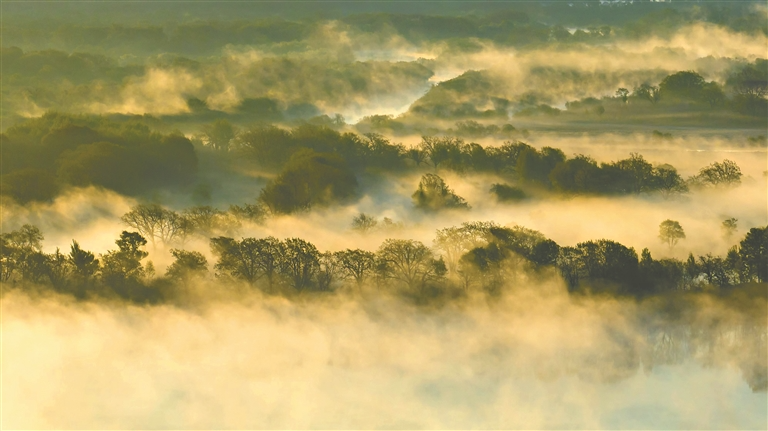 乌苏里江饶河段晨雾中树影迷离。战志远摄