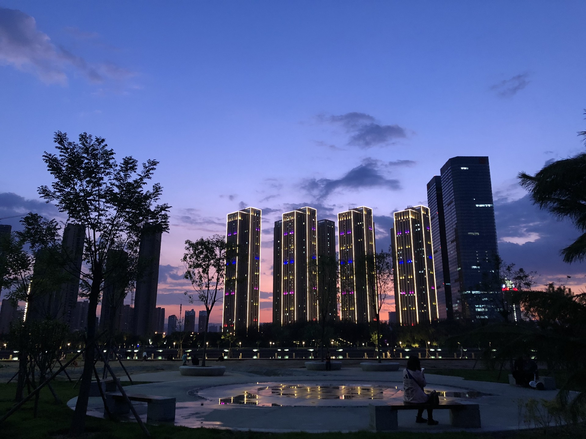 晚霞染红了天,整座城市瞬间浪漫了起来。