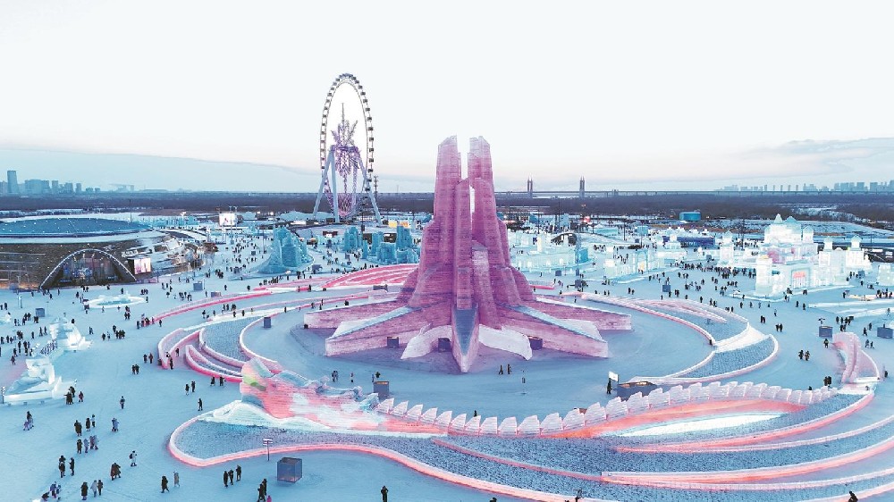 春暖冰城,第26届哈尔滨冰雪大世界2月26日落下帷幕。作为世界最大的冰雪主题乐园,这个冰雪季,园区接待游客量超过356万人次,同比增长31%,刷新历史纪录。这是2月25日拍摄的第26届哈尔滨冰雪大世界园区...