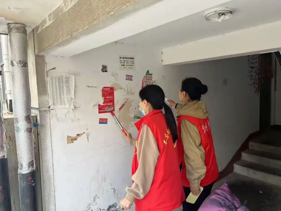 在瑞景新城社区内,网格员手持清洁工具,正在清理所有乱涂乱画和小广告杂物、建筑垃圾、生活垃圾、白色垃圾、烟蒂、纸屑;清除绿化区域的枯枝、枯草、落叶和树上悬挂物;清理所有乱堆乱放物品;将自行车、摩托车、电瓶车摆放整齐;擦洗垃圾箱、宣传栏等公共设施。持续做好小广告清理整治精准化、常态化、便利化,提升辖区群众文明素养,以打造干净整洁的环境为着力点,深耕精神文明建设提升社区治理“软实力”。