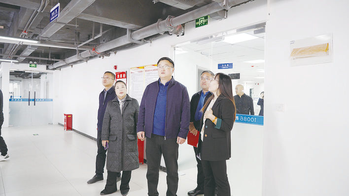 图③任一通等参观新入驻亚联智慧园区的企业。