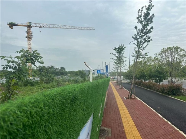 益阳龙岭智慧新城总部基地产业园工程施工现场,项目部针对裸露土、材料运输、现场施工作业等易产生扬尘的环节,构建了全方位、立体化的扬尘治理体系。依托智能化监测手段,工地内安装了PM2.5、PM10在线监测仪,实时采集空气质量数据,一旦颗粒物浓度超标,围挡喷淋、雾炮机立即启动,形成“监测—预警—治理”闭环管理。
