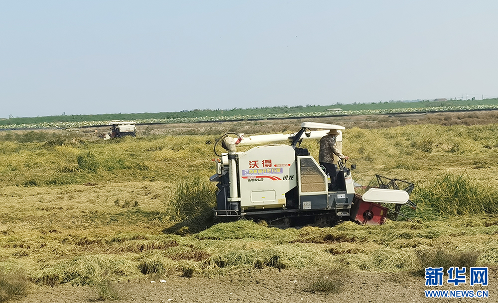 九沟村“稻渔综合种养”稻田里水稻收割。新华网发 诸子睿摄