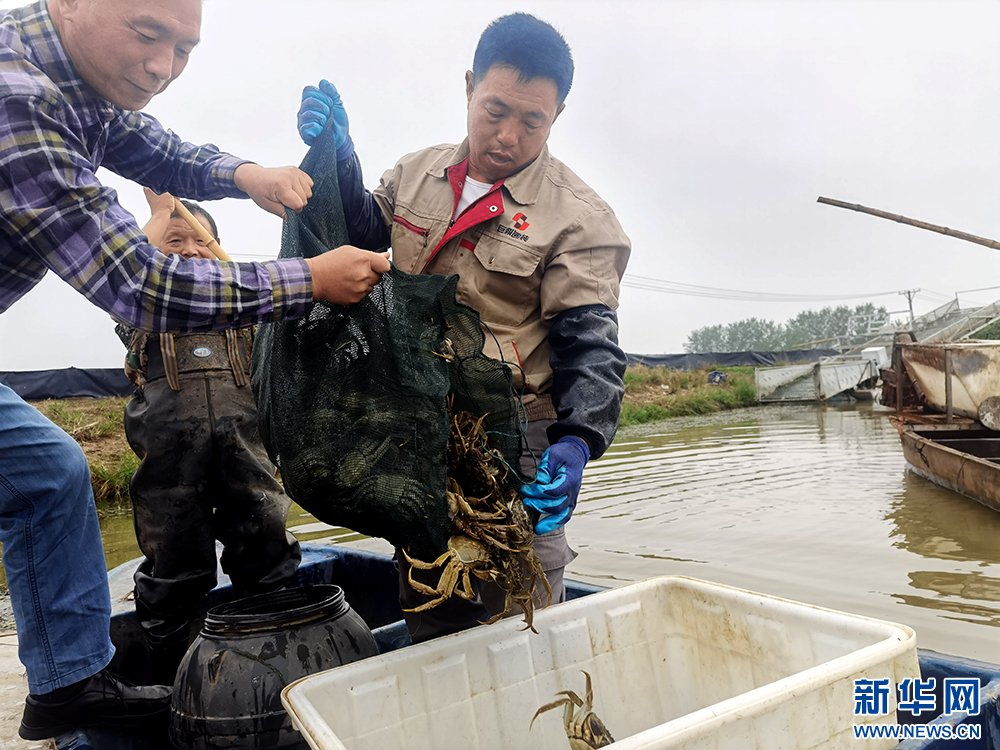 虾蟹轮作的螃蟹收获。新华网发 诸子睿摄