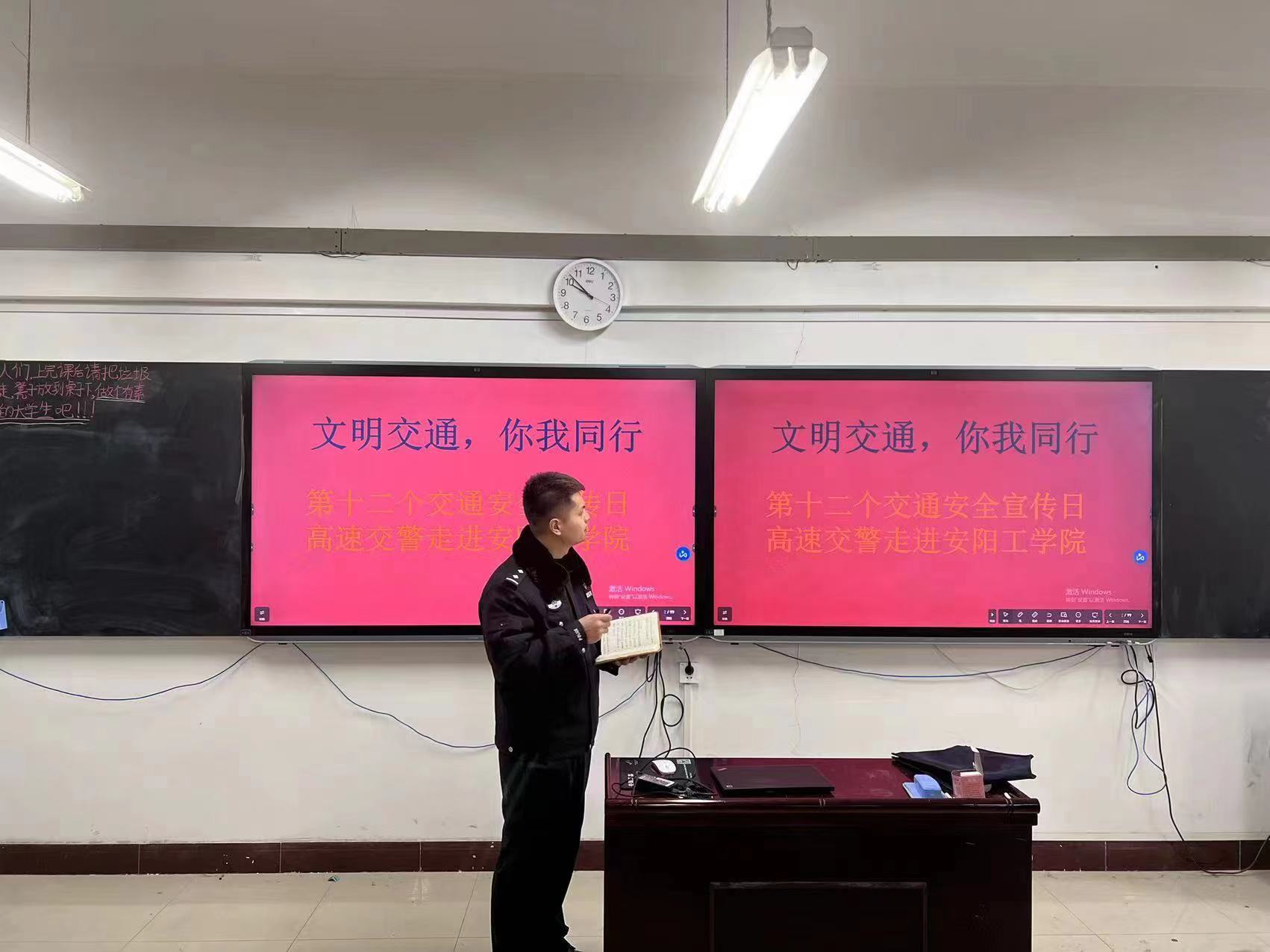 12月2日上午,河南省公安厅高速交警总队四支队在第十二个全国交通安全日,走进安阳工学院,与同学们交流高速公路安全驾驶知识,开展2023年“文明交通 你我同行”交通安全宣讲活动。
