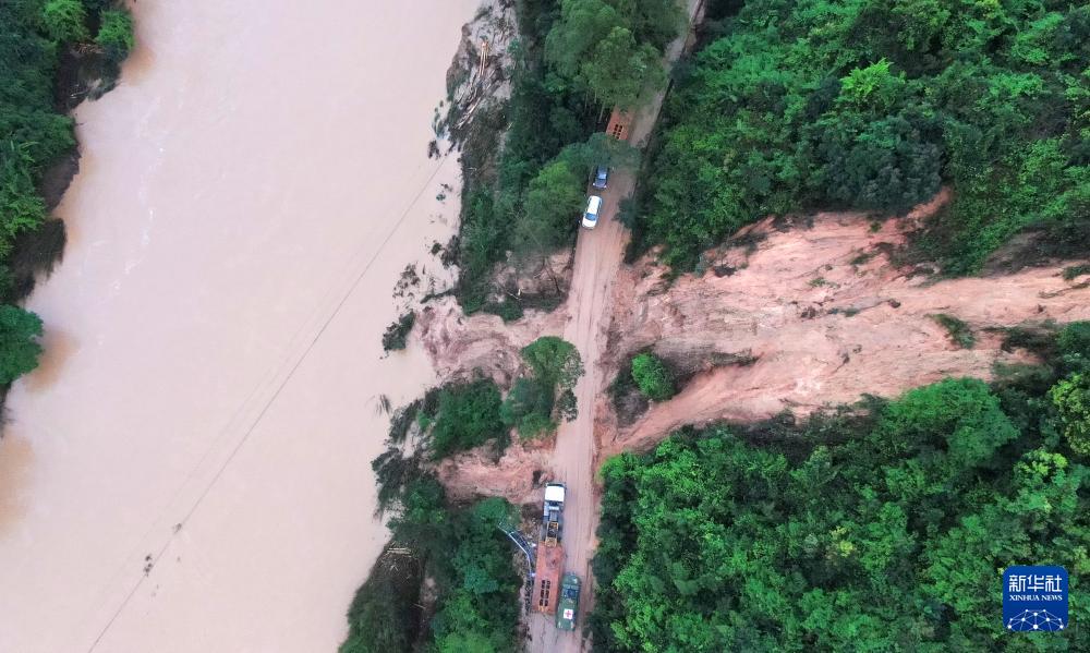 前往广东省韶关市武江区江湾镇的道路多处发生山体滑坡(4月21日摄,无人机照片)。