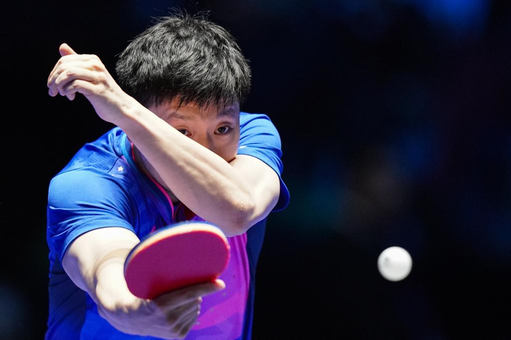 4月21日,马龙在比赛中回球。新华社记者 王申 摄