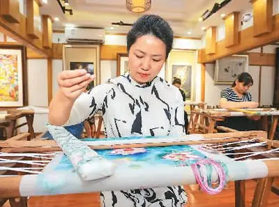 位于遂宁市船山区永和家园的四川省非遗研学传习中心里,蜀绣非遗传承人黄海彦和数名绣娘围坐在一起,为一年一度的遂宁市乡村振兴蜀绣技能大赛创作参赛作品《“花开果成”荷花韵》...