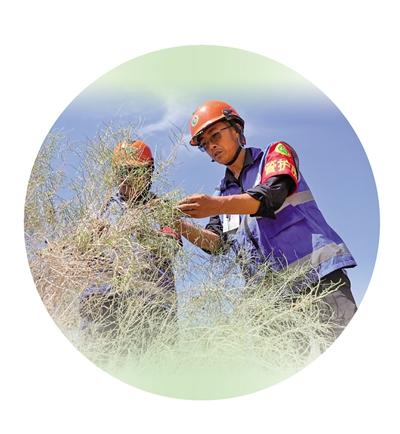 临泽县北部荒漠区,护林员在检查梭梭树生长情况。殷 旭摄(人民视觉)