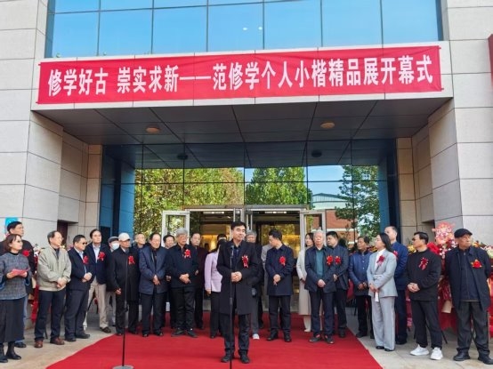 2025年11月14日“修学好古,崇实求新”范修学小楷精品书法展在石家庄学院开幕。这次展览的小楷书法作品是范修学先生经过几十年的沉淀和积累,在2024年用半年多时间创作的110多幅小楷书法作品,内容选录先秦时期直至近当代的文史经传、诗词曲赋等。作品尺幅有长有短,在方寸的笔画之间,小中见大,气象万千。其中最长的一幅小楷长卷长60多米、4万多字。作者通过笔墨技法抒发心中的所感所想,它是作者情感的直接流露。如清代刘熙载在《艺概》中说: "书者,如也:如其学,如其才,如其志,总之日如其人而已。"我们通过作品看到的是作者的学识、修养、趣味、胸襟。范修学先生的书法展主题突出、特色鲜明,在省内外产生了较大影响。置人书法尚韵,无论小楷与行草,他们都崇尚一种平和简静,萧散自然的气息。