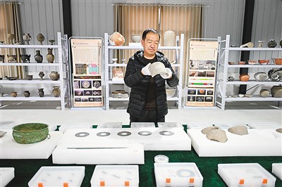 日前,雄安新区文物保护与考古工作站负责人雷建红在整理南阳遗址出土文物。