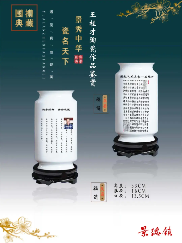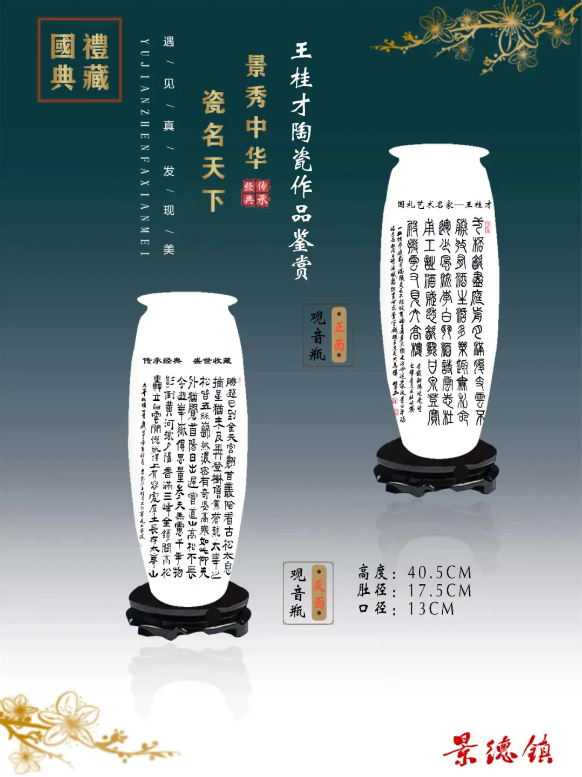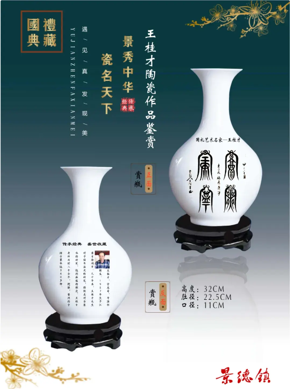 景德镇是"瓷器之国"的代表和象征,制瓷历史悠久,瓷器精美绝伦,闻名全球,有"瓷都"之称。景德镇生产瓷器的历史源远流长唐代烧造出洁白如玉的白瓷,便有“假玉器”之称。在宋代御赐殊荣,即皇帝宋真宗将年号景德赐给景德镇,于是景瓷驰名天下。景德镇瓷器白如玉,薄如纸,明如镜,声如磐”尤其是融工艺、书法、绘画、雕塑、诗词于一炉,诚乃"贵逾珍宝明逾镜书比荆关字比苏”,典雅秀丽的青花五彩缤纷的彩绘,斑斓绚丽的色釉玲珑别透的薄胎,巧夺天工的雕塑,无一不是传统文化艺术的瑰宝!