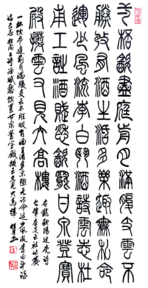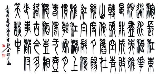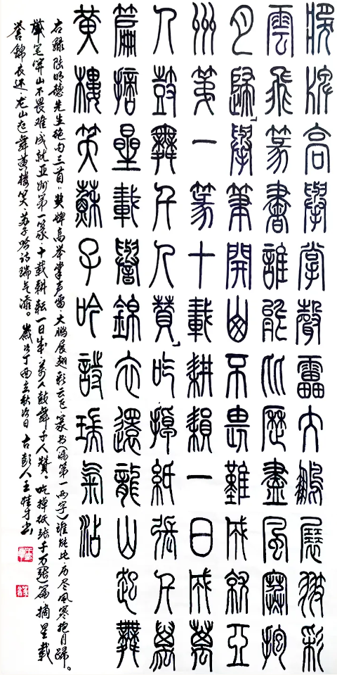 王桂才先生的篆书,其品类之多,国内唯一。其作品古逸沉远,劲俊姸妙。笔法俊美,古朴遒劲,雄浑醇厚,令人叹服。