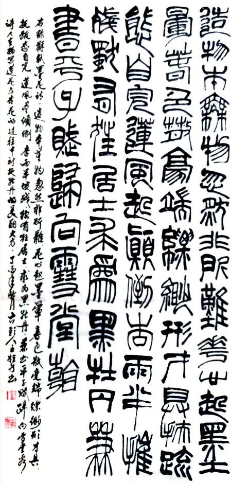 王桂才先生的篆书个性鲜明,秀蔚雄迈,每一种篆体都美伦美奂,赋予了生命的活力! 在他的笔下,让人们领略了中国几千年古文字之美,真是赏心悦目,心旷神怡。他是一位德艺双馨,受人尊敬的学者型书家。