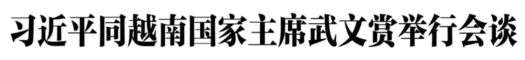 习近平指出,昨天,我同阮富仲总书记宣布构建具有战略意义的中越命运共同体,携手开辟了两党两国关系发展新阶段。中越两国人民在争取国家独立和民族解放斗争中并肩战斗,在社会主义革命和建设事业中相互支持,始终守望相助、风雨同舟,结下了“同志加兄弟”情谊。构建具有战略意义的中越命运共同体,是对两党两国老一辈领导人共同意志的传承,对往昔峥嵘岁月的致敬,对两国革命友谊的发扬,是两党两国高层从中越关系长远发展大局和世界社会主义力量团结的战略全局出发作出的重大历史性决策,符合中越推进各自现代化事业的共同需要,符合两国人民的共同利益。习近平强调,双方要充分认识构建中越命运共同体的历史必然、战略意义、现实要求和国际责任,围绕政治互信更高、安全合作更实、务实合作更深、民意基础更牢、多边协调配合更紧、分歧管控解决更好的六大目标,不断赋予两国关系新的时代内涵,携手推动具有战略意义的中越命运共同体落地生根、开花结果,造福两国人民。第一,加强政治引领,凝聚构建中越命运共同体的战略共识。两党两国高层要继续通过灵活方式保持深入战略沟通,加大互学互鉴,深化治党治国经验交流,共同提升治理体系和治理能力现代化水平,更好服务各自国家发展。第二,加强团结协作,筑牢中越命运共同体的安全防线。中越同为共产党领导的社会主义国家,维护政治制度安全、捍卫社会主义事业是我们共同的责任使命。双方要加强团结,坚持开放、共赢,共同防范抵御外部渗透破坏图谋,为壮大世界社会主义力量、推动人类和平和进步事业作出应有贡献。第三,深化互利合作,做大中越命运共同体的利益蛋糕。双方要加强顶层设计,落实好共建“一带一路”倡议同“两廊一圈”战略对接合作规划纲要,加快基础设施互联互通,扩大越南优质农产品输华。加强数字经济、绿色发展等领域合作,拓展两国务实合作新的增长点。第四,加大民意引导,夯实中越命运共同体的社会根基。要把夯实中越民间友好作为一项系统工程来抓,推进两党两国传统友好宣传教育,用好文化、旅游、地方合作等平台,为两国人民特别是青年之间的交往搭建更多桥梁,增进相互了解和友好感情。第五,妥善管控分歧,提高中越命运共同体的稳定预期。中国和越南同为南海重要沿岸国,在维护南海和平稳定方面既有共同利益,也有共同责任。中方愿同越方加强沟通协调,找到双方都能够接受的海上问题长久解决办法,推动各方早日达成实质、有效的“南海行为准则”,为地区和平稳定作出更大贡献。武文赏表示,习近平总书记、国家主席对越南进行国事访问是越南党、国家和人民期盼已久的大事,是越中关系中的重大历史事件。昨天两党总书记一致同意,共同构建具有战略意义的命运共同体,这为越中关系未来指明了方向,必将推动越中关系步入更高水平发展的新阶段。越中老一辈领导人缔结的深厚传统友谊历经国际风云考验,成为两国人民的共同财富。当今国际形势正在经历复杂变革,越中两国都处于关键发展阶段,巩固和加强两党两国信任和合作,持续推进发展两国社会主义事业,是两国人民的共同愿望。在阮富仲总书记和习近平总书记不可替代的战略引领下,越中关系从未像今天这样全面、深刻、友好。越方愿通过习近平主席此访再次向世界发出明确信息,发展对华关系始终是越南党和政府的头等优先和战略选择。越中关系坚如磐石,不会受到任何外部势力挑拨离间和干扰破坏。武文赏再次祝贺中方成功举办第三届“一带一路”国际合作高峰论坛,相信在以习近平总书记为核心的中共中央领导和习近平新时代中国特色社会主义思想指导下,中国一定能够实现中共二十大确立的各项目标。中国的发展和成功将给予越南巨大鼓舞和支持。越方愿认真落实两党总书记重要共识,充分发挥两国社会制度相同、理想理念相近等独特优势,加强治党治国经验交流,全面推进两国在政治、经贸、人文、安全等各领域务实合作,维护国家政治安全,助力工业化现代化建设。越方始终奉行一个中国政策,真诚支持中国统一大业。越方愿以相互尊重、合作共赢的精神妥善解决海上分歧问题,推动越中命运共同体建设行稳致远。习近平主席提出的系列全球倡议,体现了大国大党的责任担当以及中国对国际发展与合作的重要引领,越方愿积极参与,同中方密切国际协作,一道为促进世界和平稳定和人类进步福祉作出新的贡献。会谈后,习近平和夫人彭丽媛出席武文赏夫妇举行的欢迎午宴。
