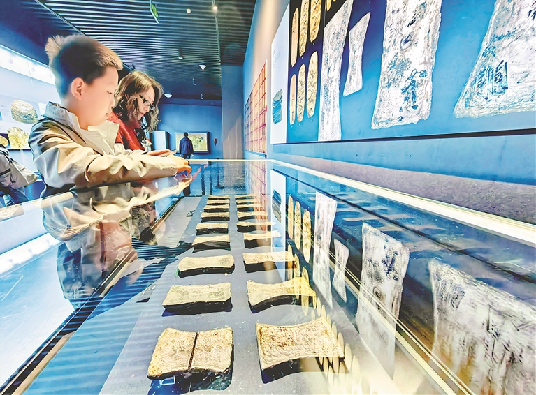 观众们在黑龙江省博物馆拍摄展品。黑龙江日报记者 苏强摄