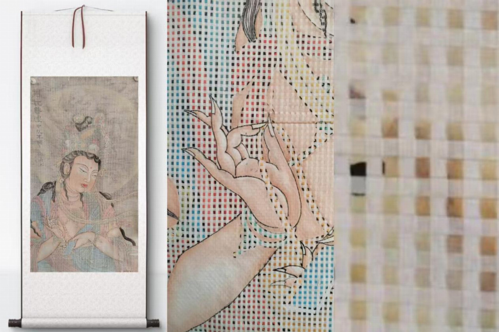 在工艺优化层面,团队深入改良“跳格”技法,借助数字化手段精确控制经纬线密度,并创新跳格编织手法。通过有规律地跳过部分经纬线,创作出兼具传统韵味与现代审美的纹理图案,为永春纸织画赋予了全新的艺术生命力,使其在当代审美语境中焕发出新的魅力。