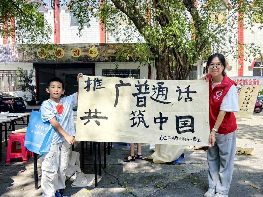 实践队队员李凤林表示:“在协助举办书法亲子比赛过程中,我们以普通话为桥梁,将传统书法文化与社会交流、亲子互动相联结。‘书同文 语同音’的模式为推普活动注入文化底蕴、拓展实践空间。此次活动不仅提升了大学生实践能力,更让我们感受到推普在乡村振兴与文化交流中的作用。”