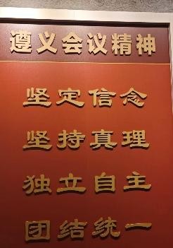 离开展馆前,鲜红的遵义会议精神墙成为最佳注脚:坚定信念、坚持真理、独立自主、团结统一。四组鎏金大字在射灯下熠熠生辉,恰如当年马灯照亮会议桌的模样。团队在墙前久久驻足,那些地图上的箭头、领袖的论断,此刻熔铸成信仰的图腾。