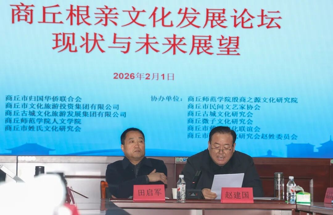 中国城乡新闻网讯(田保庆 赵德领 报道)临近岁末,春意渐浓。一场以“商丘根亲文化:现状与未来展望”为主题,共话文化传承与文旅融合新未来的首届“商丘根亲文化发展论坛”,于2026年2月1日上午,在河南省商丘古城成功举办。本次论坛由商丘市归国华侨联合会主办,商丘市文化旅游投资集团有限公司、商丘古城文化旅游发展集团有限公司、商丘师范学院人文学院、商丘市姓氏文化研究会承办,商丘师范学院殷商之源文化研究院、商丘市民间文艺家协会、商丘古城文化研究会、商丘微子文化研究会、商丘市戴氏文化联谊会、商丘市姓氏文化研究会赵姓委员会共同协办。商丘市姓氏文化研究会常务副会长兼秘书长卢启印主持本次论坛。