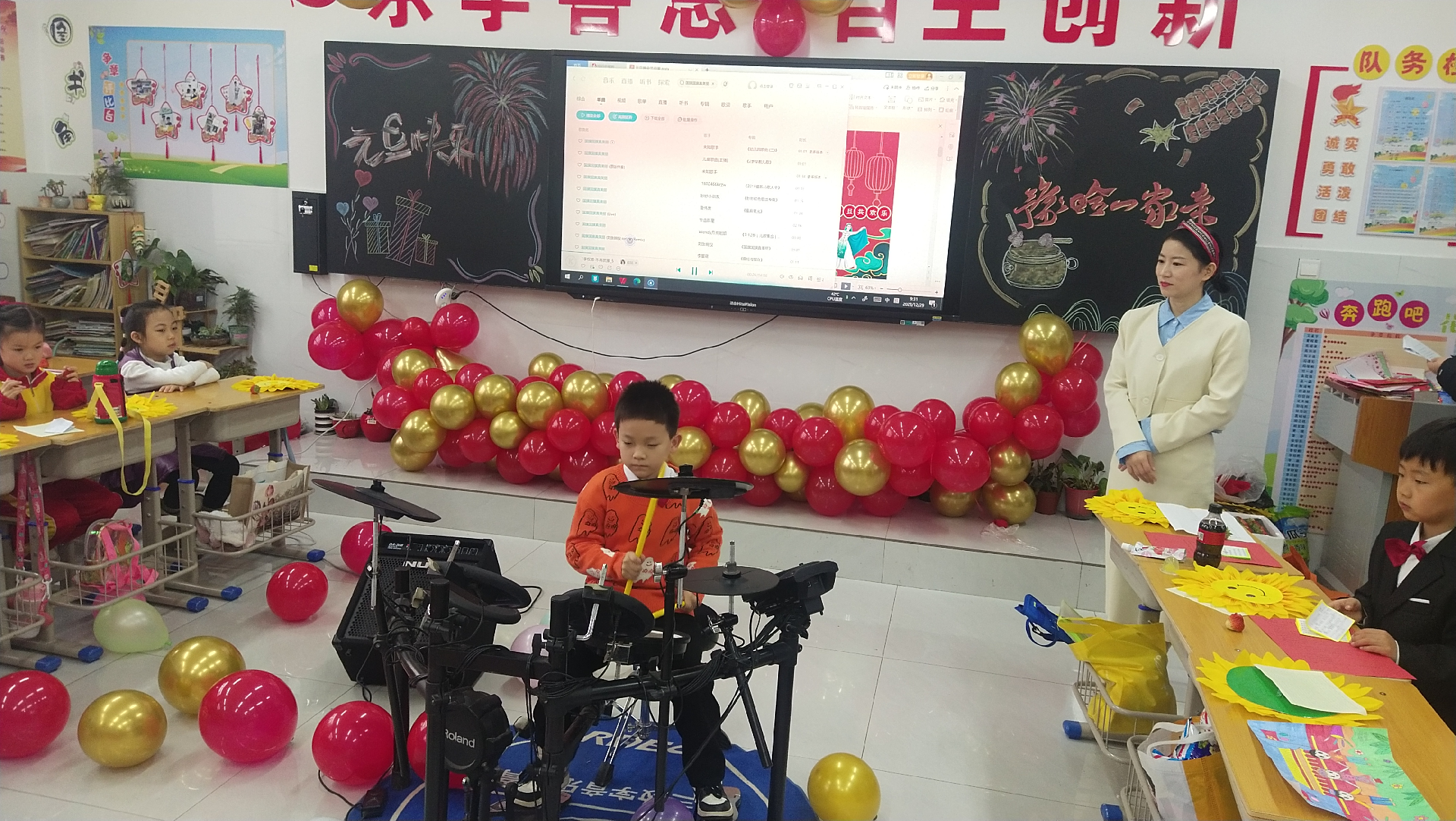 在元旦联谊活动的高潮部分,两个班级的小朋友们共同唱起了《国旗国旗真美丽》。