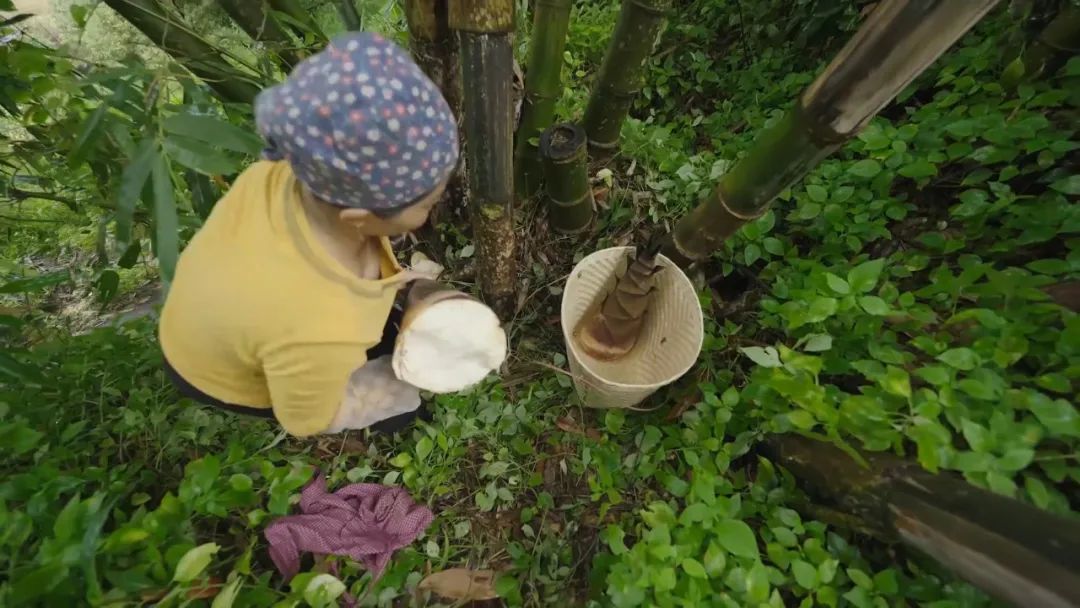 每年7月至9月,随着雨季的到来,绿春大地上各种竹笋破土而出,成为了哈尼山乡一道舌尖上的美食,今天让我们来认识生长在哈尼山寨周边的竹笋。哈尼族历来喜欢吃竹笋,有的制作成酸竹笋,有的晾干存储备食,而有的竹笋(甜竹笋)还可以直接生吃。竹笋特别是在哈尼族六月年(苦扎扎节)和新米节期间,成为一道家家必备的餐桌上的美食,它一般生长在村寨边,以一棚棚密集的形式生长,而且繁殖比较快,垂直向天生长,对生长环境的要求比较高。