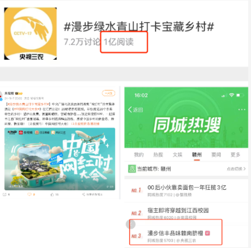 《中国网红村大会》在CCTV17、央视频田园频道、央视三农矩阵、央视频矩阵、CMG观察等权威平台发布,并联动小红书、抖音、视频号、微博等多平台发力,形成了强大的传播矩阵,实现了线上线下互动,显著提升了江西乡村的知名度。据统计,活动累计获得近100家主流媒体转发,全网话题阅读量近2亿,播放量近3000万,多次登上热搜榜,小红书相关话题阅读量2000万+,抖音、视频号播放量100万+。在这些数据的背后,大量游客被吸引至江西乡村打卡游玩,同时,活动的持续影响力也带动了江西乡村相关产业的升级与发展,为乡村经济的长远繁荣开辟了新的机遇。