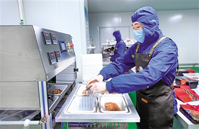 4月6日,在位于赤峰市元宝山区的赤峰中凯食品有限公司生产车间内,工作人员将熏鸡包装成盒。近年来,该公司发挥龙头企业带动作用,通过“公司+合作社+农户”模式,开展养殖技术培训,定向采购优质农畜产品,提供就业岗位百余个,带动周边300余户家庭增收致富。内蒙古日报记者 孟和朝鲁 摄