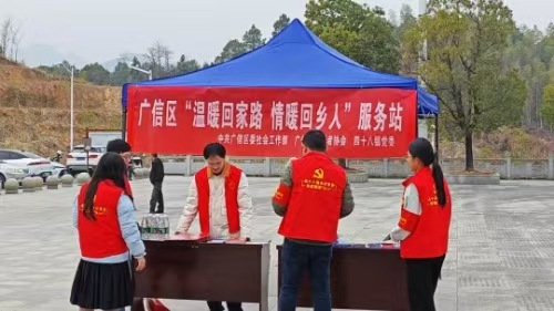“小伙子,感谢你帮助我搬行李,马上过年了,祝你新年快乐……” 1月24日,在五府山高铁小站,从福州返乡归来团圆过年的周女士开心向江西省上饶市广信区四十八镇党员志愿者桑国庆表达谢意。 随着春运大幕开启,返乡热潮涌动。连日来,四十八镇联合区委社会工作部、...
