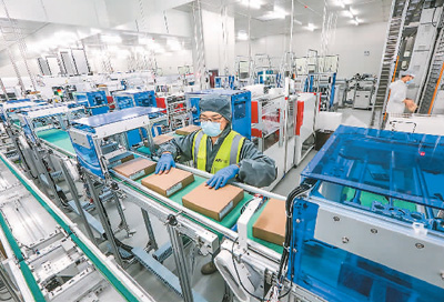 近日,安徽马鞍山经开区重点新能源项目正奇光能科技有限公司多条自动化生产线满负荷运转。马鞍山经开区全力做好服务保障,力争新春开门红,确保一季度经济强劲开局。图为工人正赶制光伏产品,确保订单如期交付。