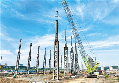 位于辽宁省大连市的大连华锐重工集团股份有限公司大型高端风电核心零部件智能制造项目建设现场,热火朝天。该项目是大连重工装备集团重组以来投资建设的最大单体项目,总投资25.75亿元,由中建八局东北公司承建,建成后将成为行业领先的现代化大型高端铸件研发和制造基地。图为项目建设现场。