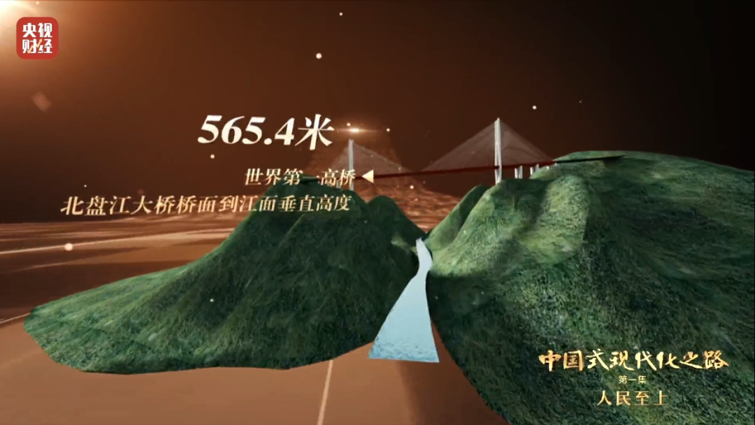 世界第一高桥——北盘江大桥桥面到江面垂直高度达565.4米;