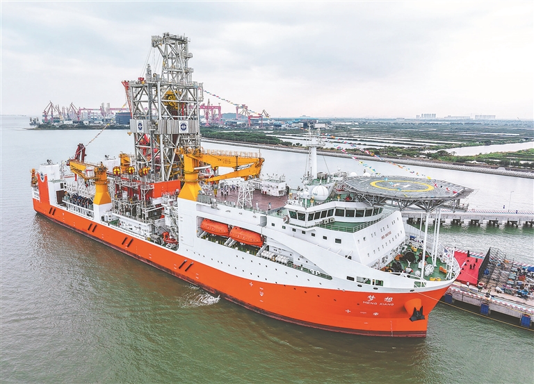 当日,拥有最大11000米的钻深能力、我国自主设计建造的首艘大洋钻探船“梦想”号在广州正式入列,标志着我国深海探测关键技术装备取得重大突破。