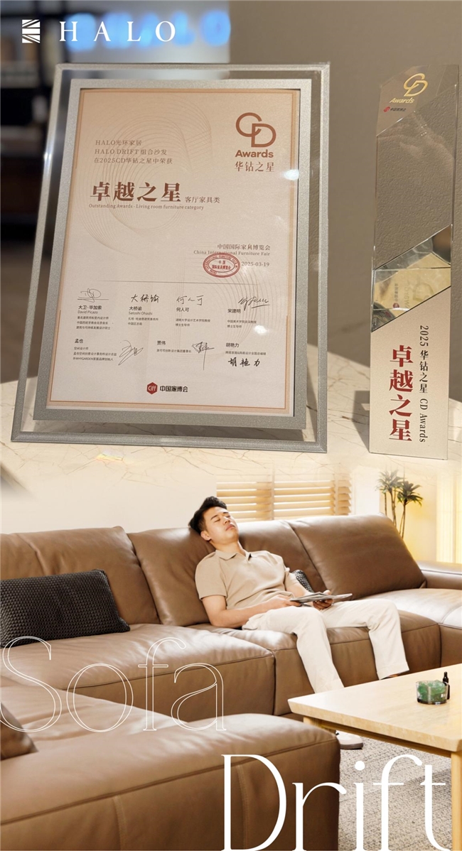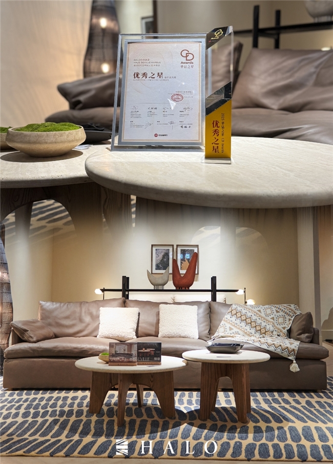 作为好设计的先锋代表,HALO光环家居继2024年凭借HALO TORTE 沙发荣获中国家博会(广州)华钻奖-客厅家具类优秀奖及明星热销单品HALO云沙发荣获客厅家具类至尊奖后,本届中国家博会HALO光环家居的原创单品HALO DRIFT原生皮沙发在国内外顶尖设计大咖、行业专家、学术权威、资深媒体所组成的权威评审团中继续脱颖而出,荣获2025中国家博会(广州)华钻奖客厅家具类-卓越之星。HALO SEVILLE MARBLE洞石茶几荣获2025中国家博会(广州)华钻奖客厅家具类-优秀之星。作为国内首个覆盖大家居全产业链的设计专业类奖项,从产品设计、结构、绿色等方面进行全方位考核,目的为消费者呈现真正的“好设计”家居产品,不仅是对创意设计的嘉许,更是对美好生活的探寻。
