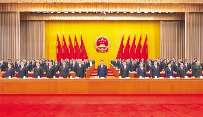 上午10时30分许,在欢快的乐曲声中,习近平等领导同志走上主席台,全场响起长时间的热烈掌声。