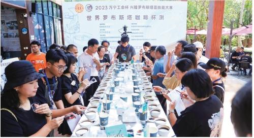 今年6月,2023万宁工会杯兴隆罗布斯塔豆技能大赛在海南热带植物园精彩上演。赛上,来自海南兴隆、福山、琼中、白沙的咖啡豆与越南、乌干达、巴西、印尼等世界各地的罗布斯塔豆同台竞技,参赛选手需在规定的时间内,将罗布斯塔豆烘焙至最佳的口感和香气。